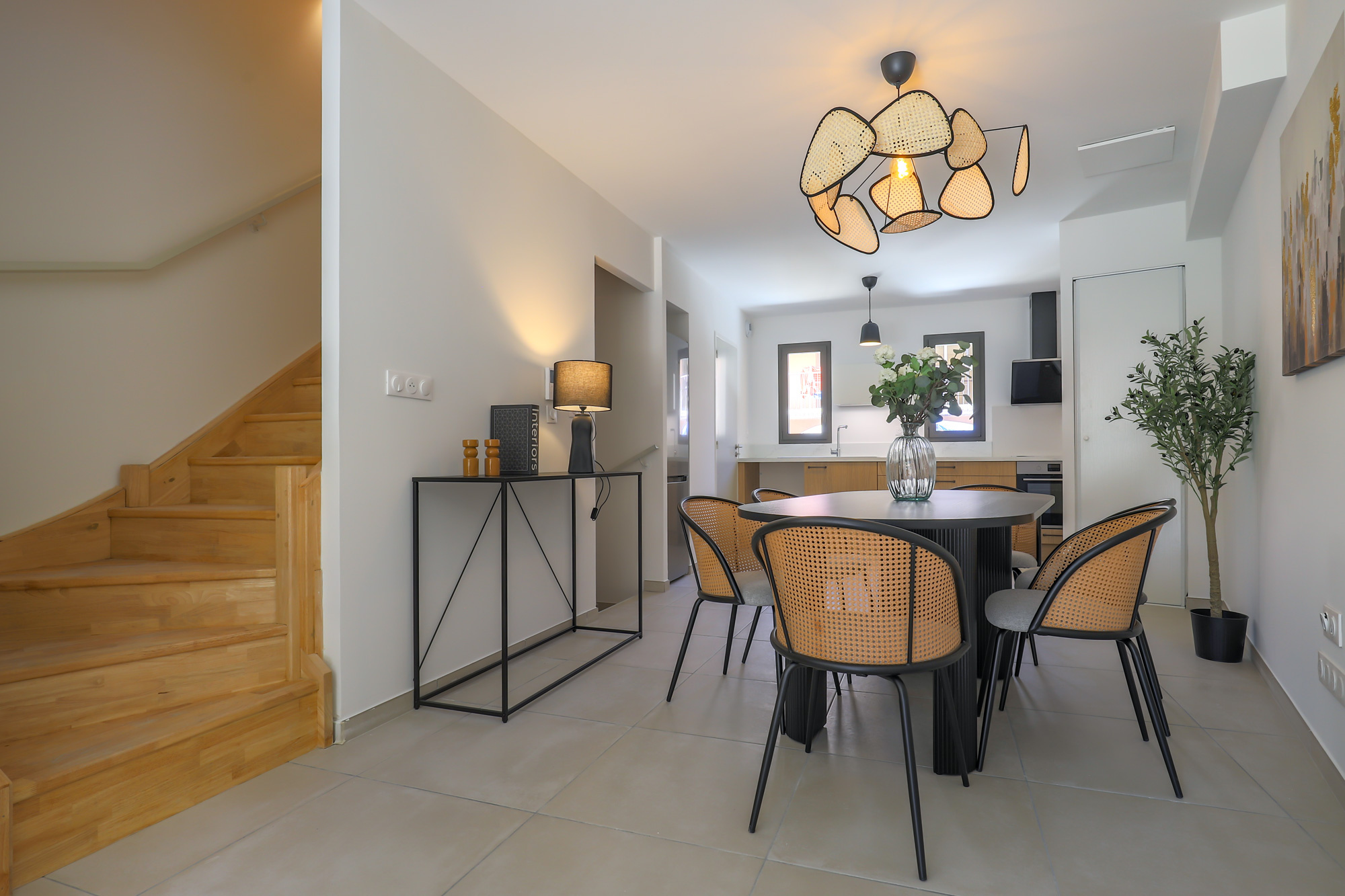 A Collioure, village préféré des français en 2024, maison 4 pièces en pleine propriété de 83 m², avec une pièce à vivre de 29 m² lumineuse grâce une grande baie vitrée en aluminium coulissante, à galandage. Des pergolas métalliques faisant office de brise soleil au-dessus des terrasses du RDC de 14 m² avec accès direct au jardin de 18 m². Arrosage par goutte à goutte avec programmateur intégré. Au 1er niveau, 2 chambres avec placards aménagés, une salle de bain avec WC séparé. Au deuxième et dernier niveau,1 chambre, 1 dressing, 1 salle de bain avec WC, et une terrasse de 9 m² où vous pourrez installer un jacuzzi. Equipé pour votre confort et vos économies d’énergies : Pilotage à distance de la lumière, des volets et du chauffage Chauffage et climatisation prévus dans la pièce principale et dans chaque chambre Production d’ECS par ballon thermodynamique Cuisine équipée, cellier, carrelage en 60x60 cm, peinture lisse, placards aménagés Un double garage 38,80 m². Possibilité de se faire installer un équipement de recharge électrique véhicule par la suite.