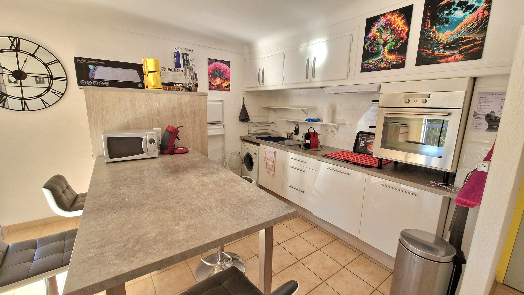 A seulement quelques minutes à pied du centre historique, joli T2 lumineux composé d’une chambre avec placard, un salon avec cuisine américaine donnant sur terrasse. Salle d’eau avec wc. Bien vendu entièrement meublé. Piscine chauffée dans la résidence et jardin commun. Place de parking dans la résidence Très bon rapport en location saisonnière. Possibilité de visite en whastapp Contacter nous au 0468823334