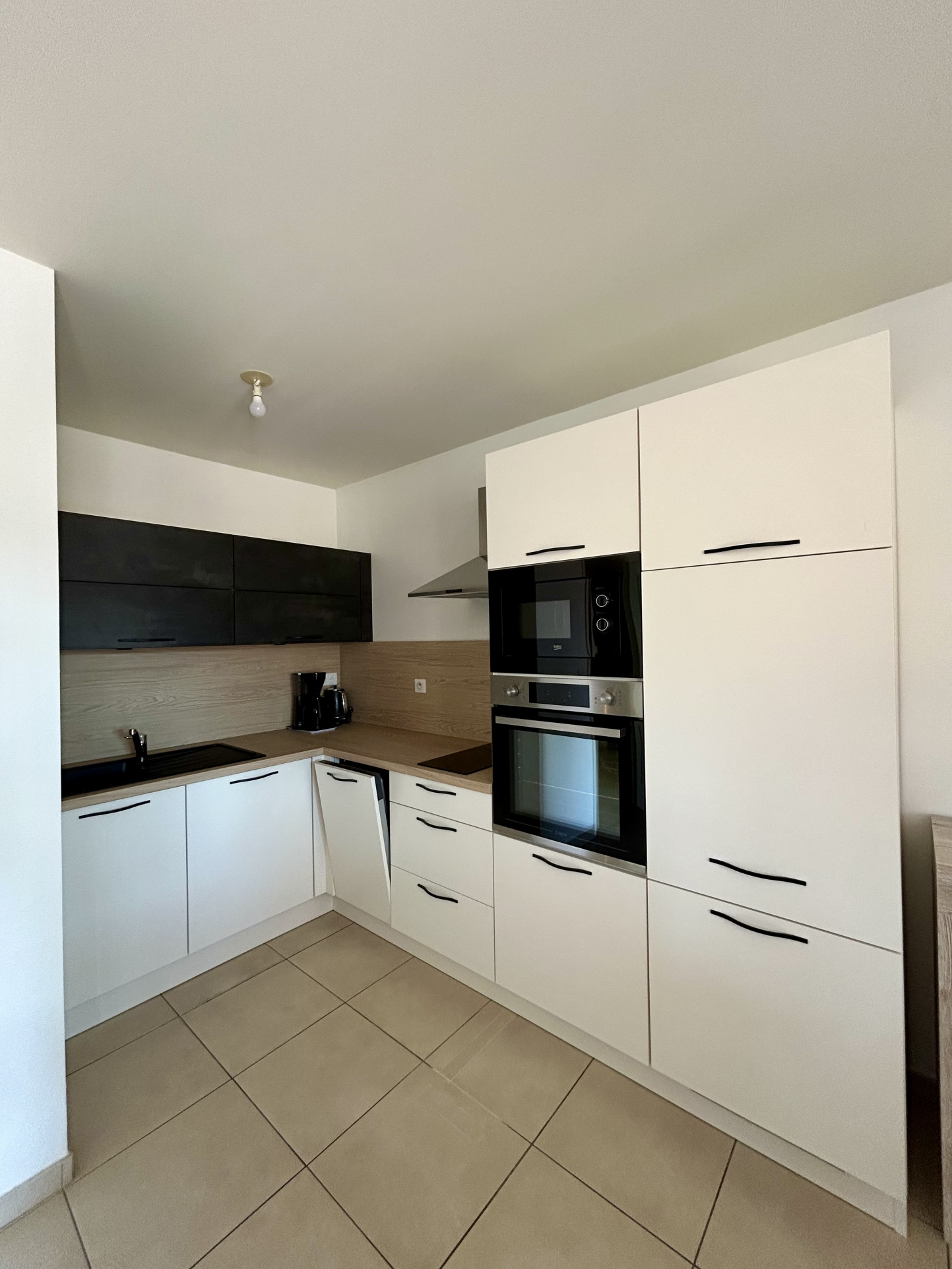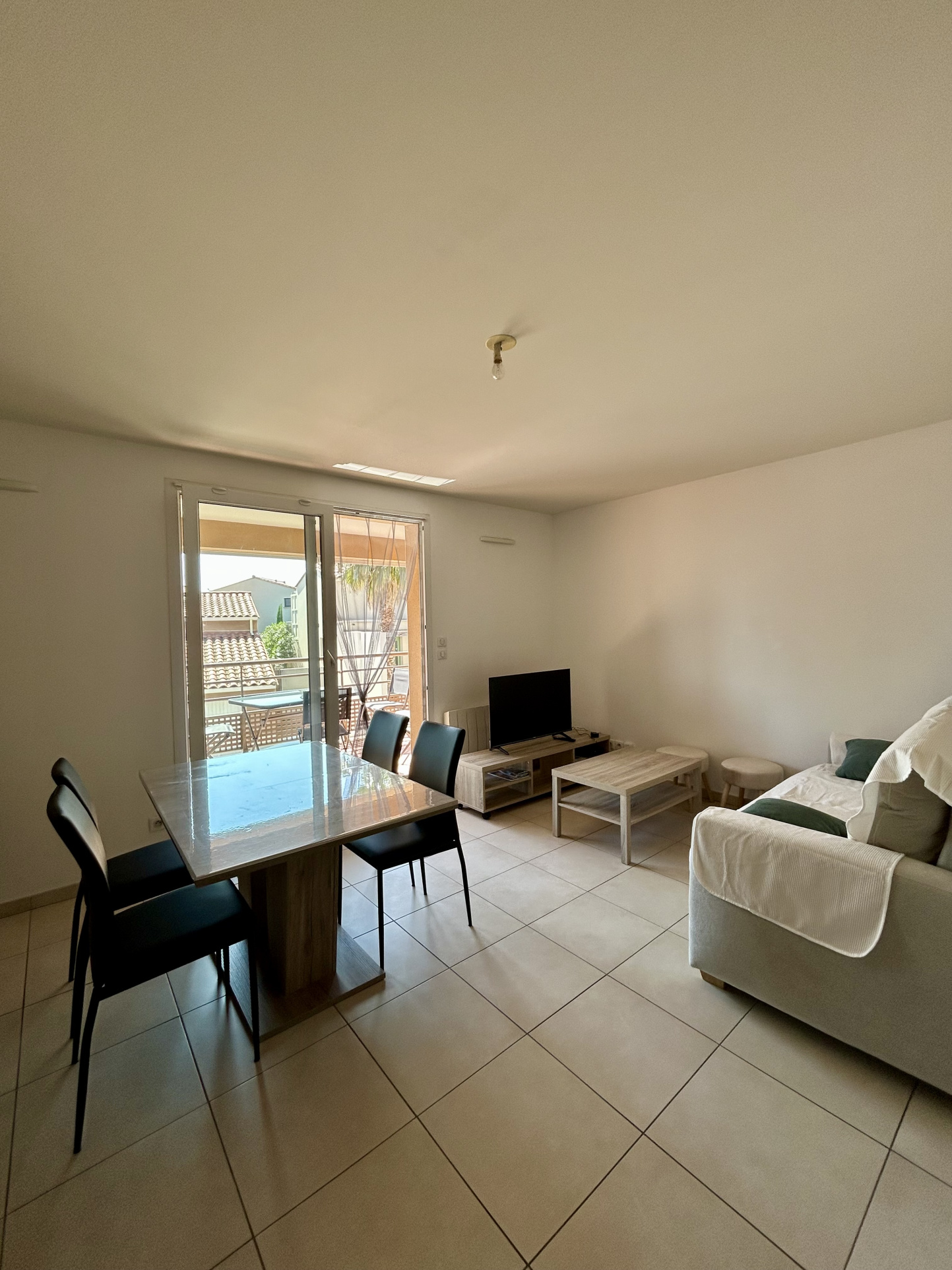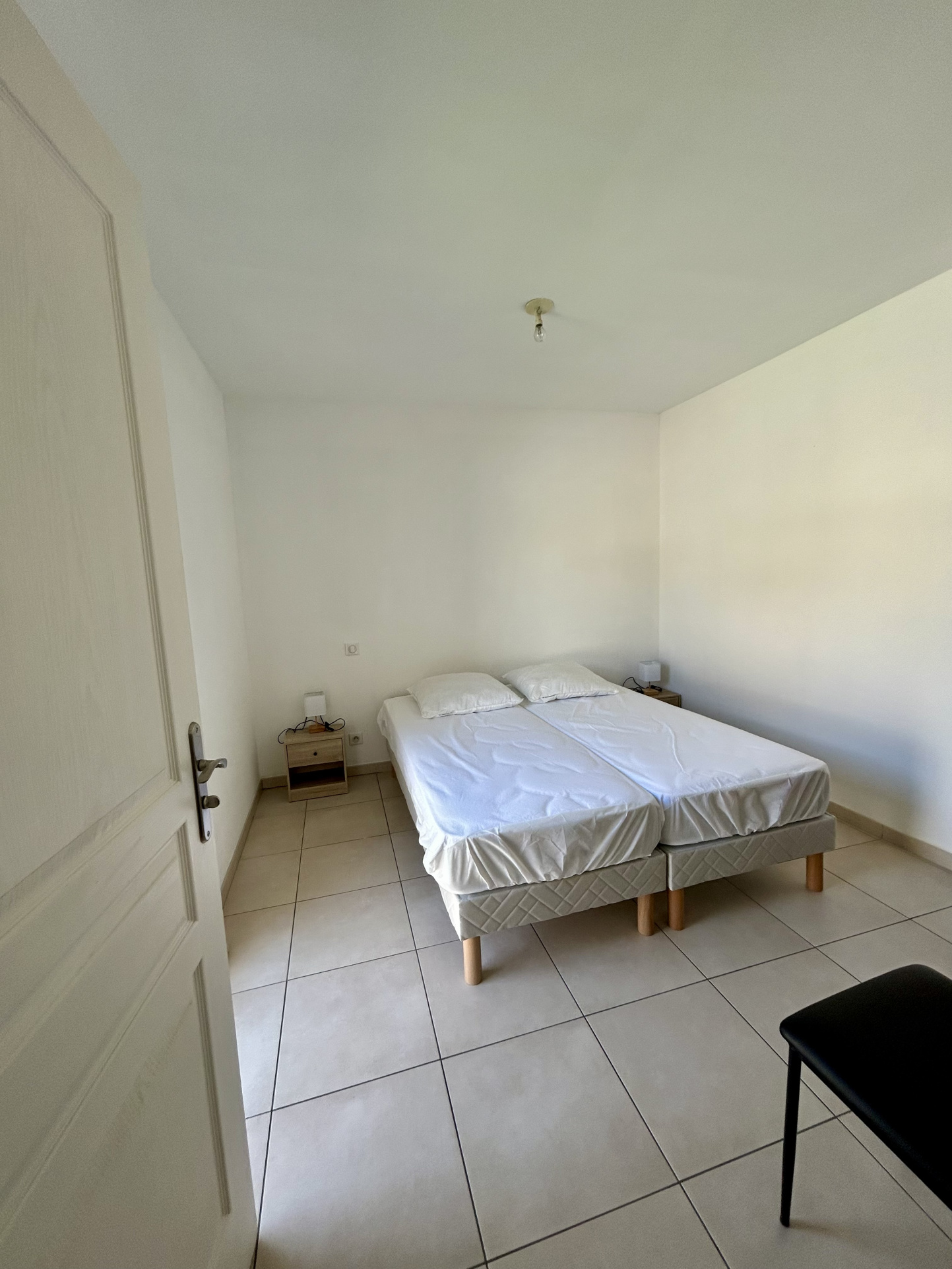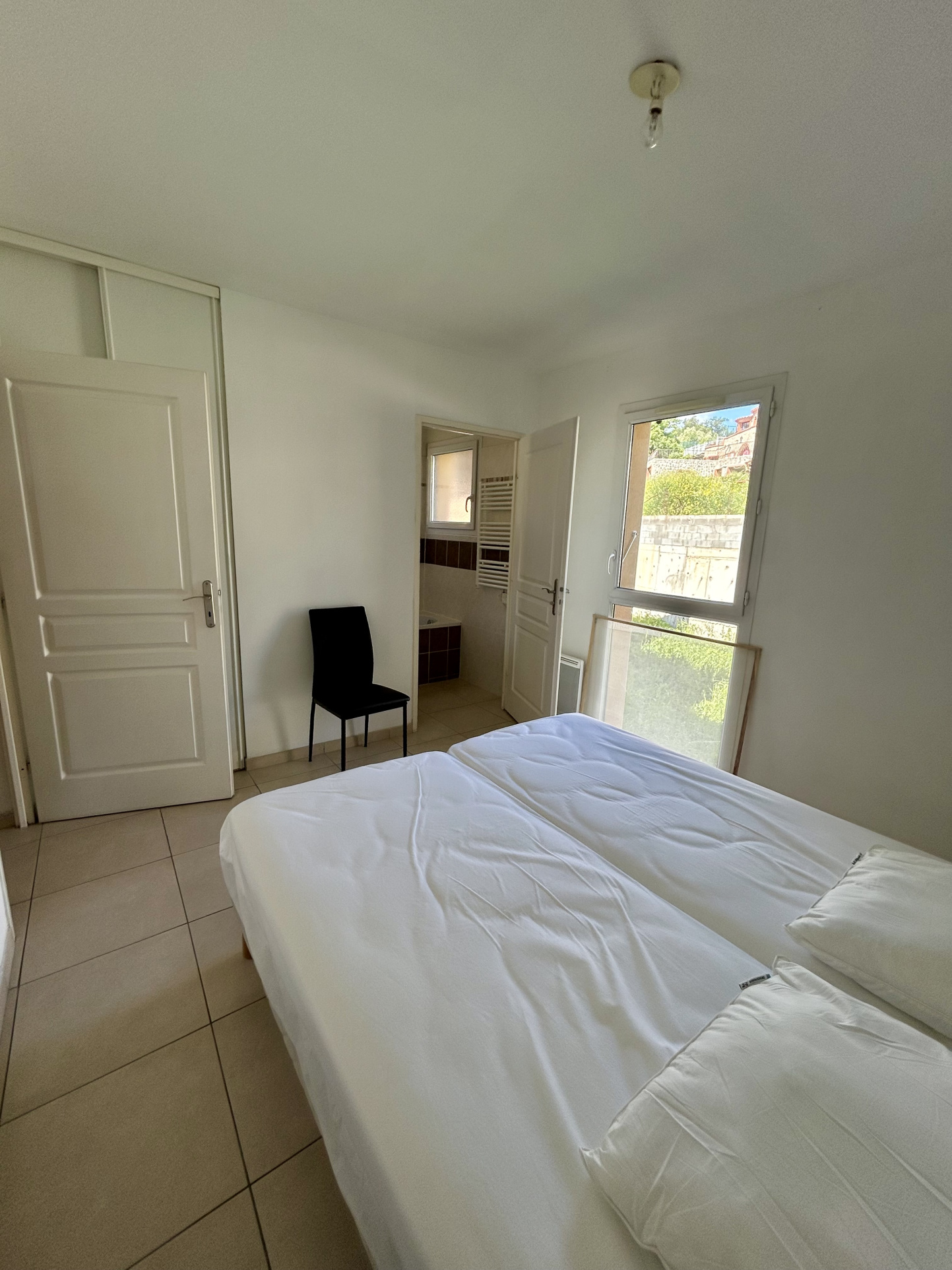 Trés bel appartement situé dans une résidence calme avec garage privé, piscine Possibilité de se garer dans la résidence, parking commun. Cuisine entièrement équipée Une chambre avec 2 lits en 80 cm accolés Un salon avec un canapé lit pour 2 personnes Trés belle terrasse, avec transat, chilienne pour se détendre, table, chaise